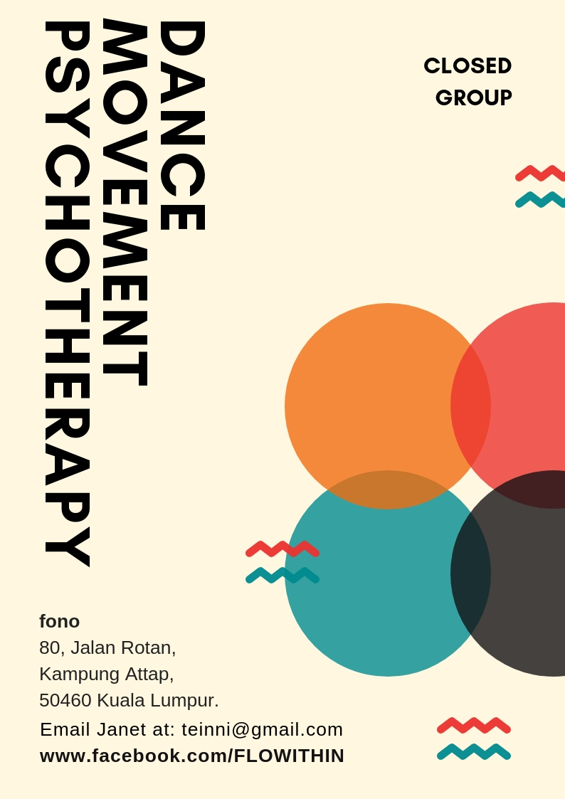 Starting December, a bunch of friends will be getting together weekly in a closed Dance Movement Psychotherapy group. Goals include building emotional support amongst friends and developing coping resources and resilience to deal with life’s stressors!